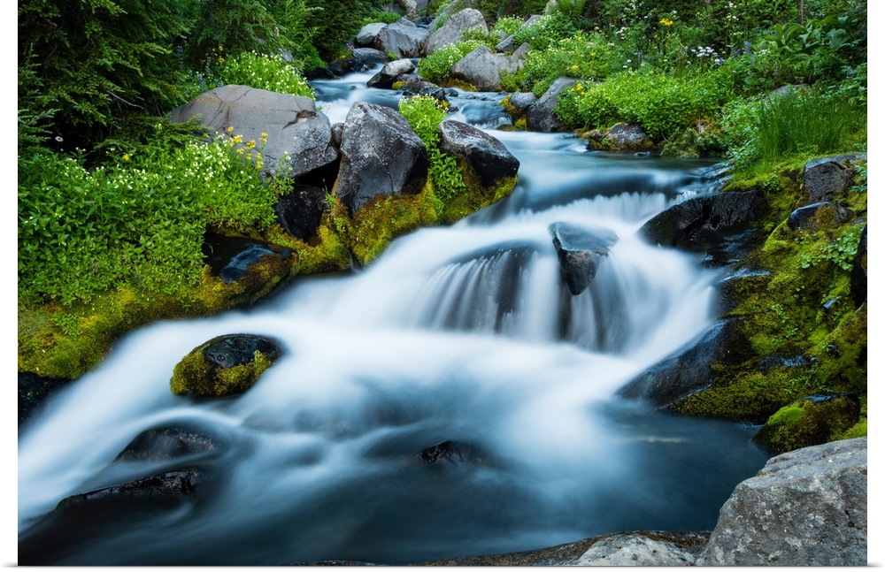 <p>Waterfall in a forest, Mount Rainier National Park, Washington State, USA</p>