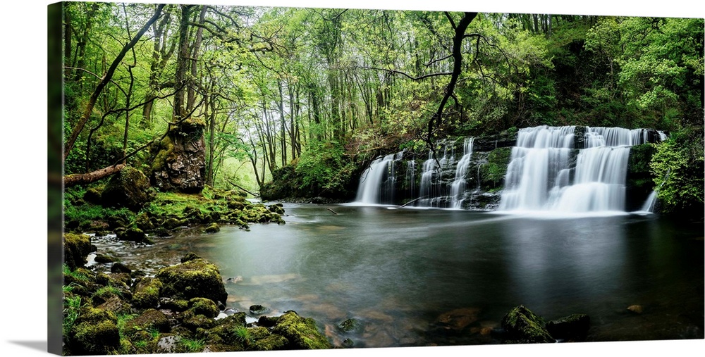 <p>Waterfall in a forest, Sgwd y Pannwr Waterfall, Waterfall Country, Brecon Beacons National Park, Powys, Wales.</p>