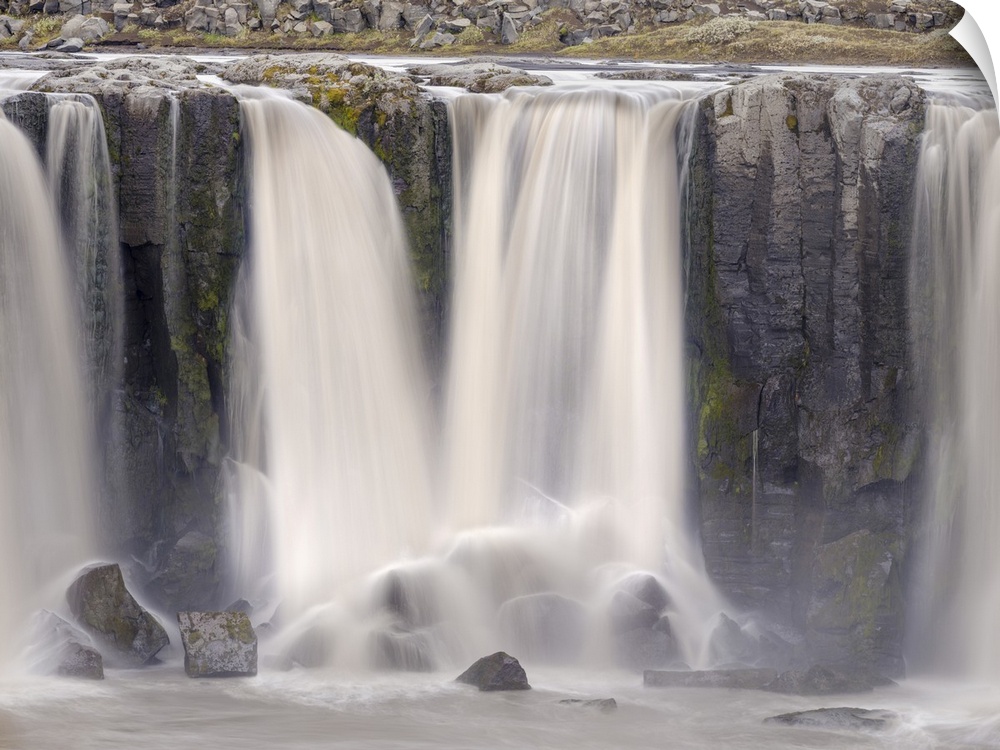<p>Waterfall Selfoss in the Vatnajokull National Park. Selfoss is the first of several waterfalls of river Jokulsa a Fjollum in the canyon Jokulsargljufur. Iceland.</p>