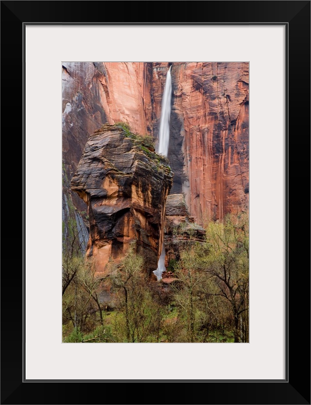 <p>Waterfall thunders down near the Temple of Sinawava in Zion National Park in Utah.</p>