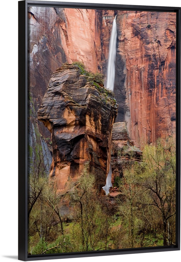 <p>Waterfall thunders down near the Temple of Sinawava in Zion National Park in Utah.</p>