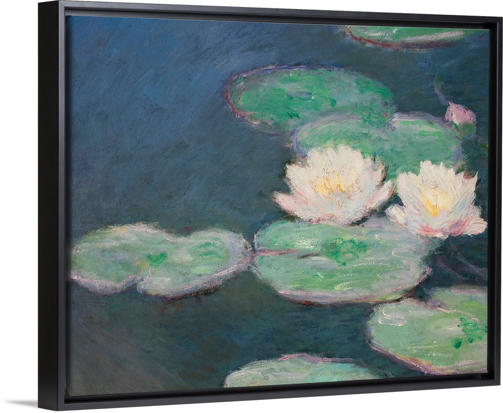 <p>Huge classic art focuses on a group of lily pads sitting on a quiet body of water.</p>