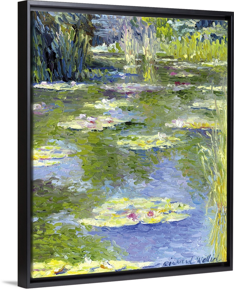 <p>Contemporary colorful painting of waterlilies in a pond.</p>