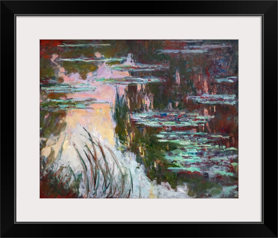 <p>Painting titled 'WaterLilies, Setting Sun' by Claude Monet, founder of French Impressionist painting. Dated 1907.</p>