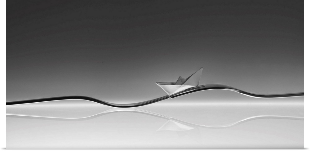 <p>A small folded paper boat resting on two forks resembling a wave.</p>