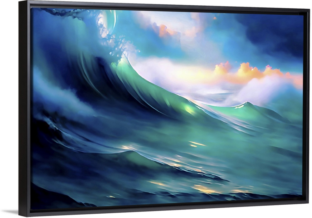 <p>Semi-abstract image of a wave, early morning sky in the background. This image is a re-interpretation of one of my studio shots of water in a pan. The movement is provided by moving around the water in the pan. The final image was post-processed to look like a painting.</p>