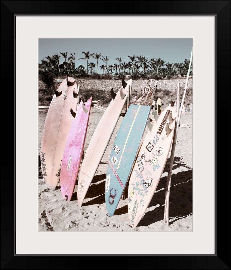 <p>Mexico, Baja California Sur, Cerritos Beach. Surfboards on the beach.</p>