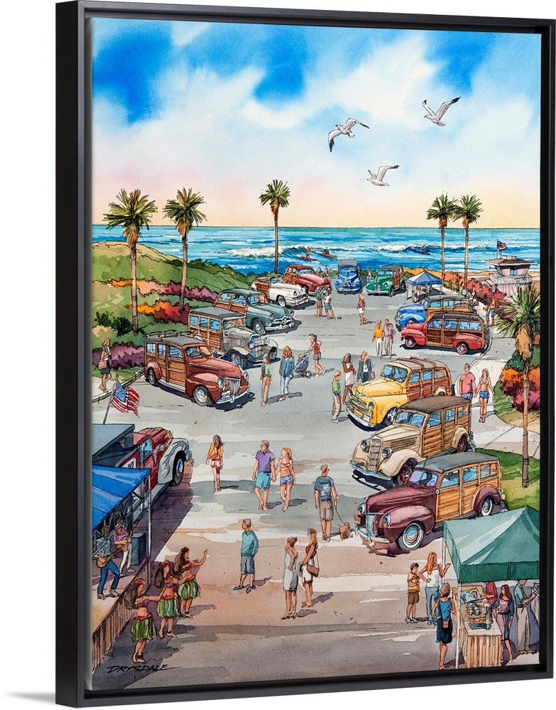 <p>Watercolor painting of a scene at Wavecrest, the largest woodie show in the world held on Moonlight Beach in Encinitas, CA.</p>
