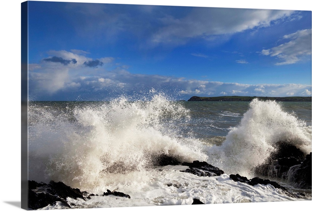 Waves and rocks , Dungarvan Bay, County Waterford, Ireland