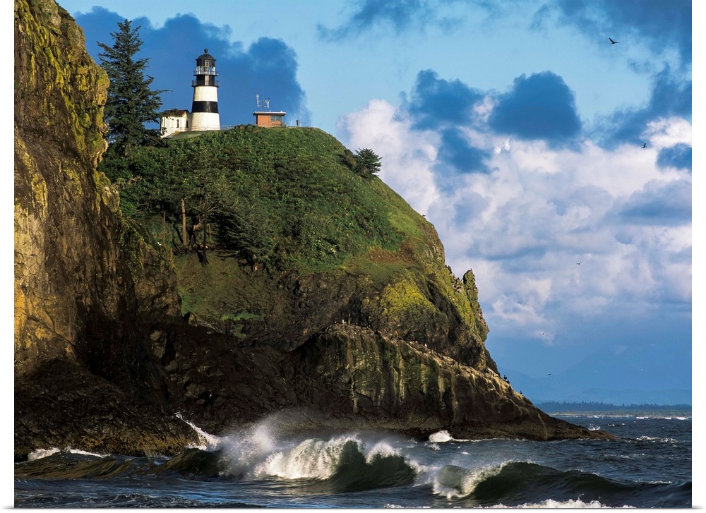 <p>Waves break at Cape Disappointment Lighthouse. Ilwaco, Washington, United States of America.</p>