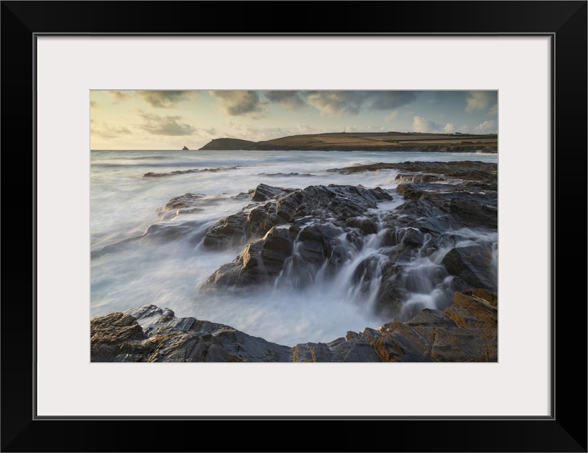 <p>Waves crash over the rocky ledges of Booby's Bay in North Cornwall, England</p>