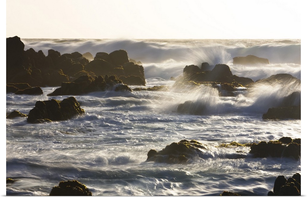 <p>Waves crashing on the rocky California coast near Monterey, California.</p>