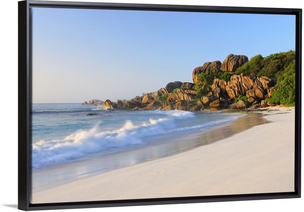 <p>Waves hitting Beach, Grand Anse in Morning, La Digue, Seychelles</p>