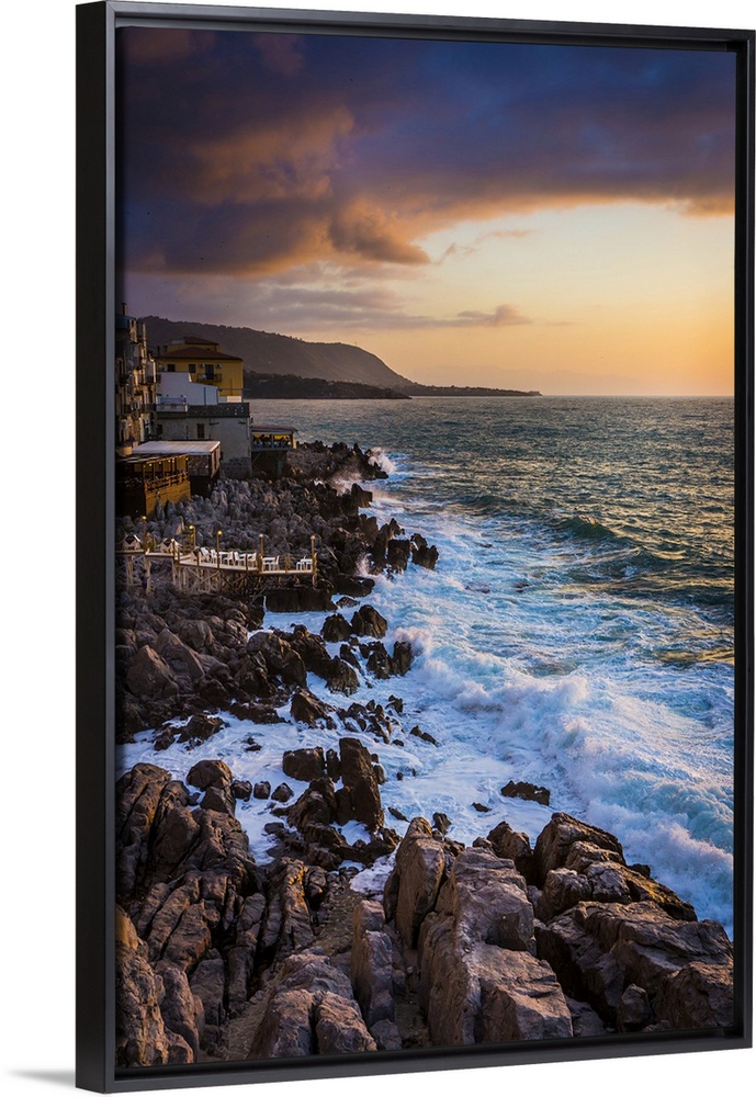 <p>Waves hitting Shoreline at Dusk in Cefalu, Sicily, Italy</p>