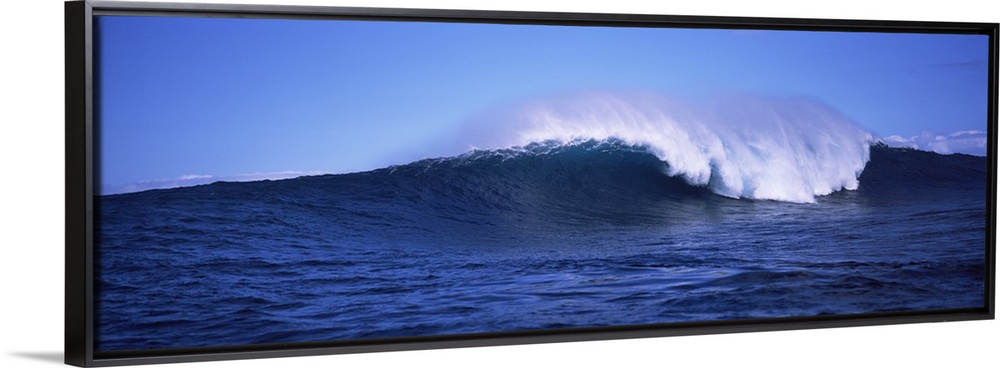 <p>Long canvas photo of a big wave crashing in the ocean.</p>