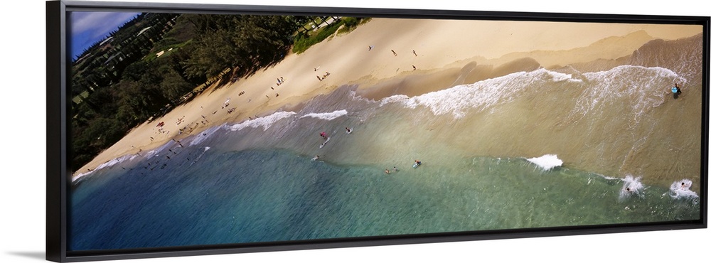<p>Long photo on canvas of ocean waves crashing on the shore of a Hawaiian beach.</p>