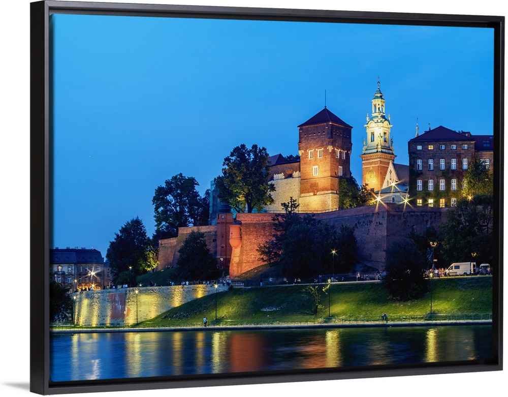 <p>Wawel Royal Castle and Vistula River at twilight, Cracow, Lesser Poland Voivodeship, Poland</p>