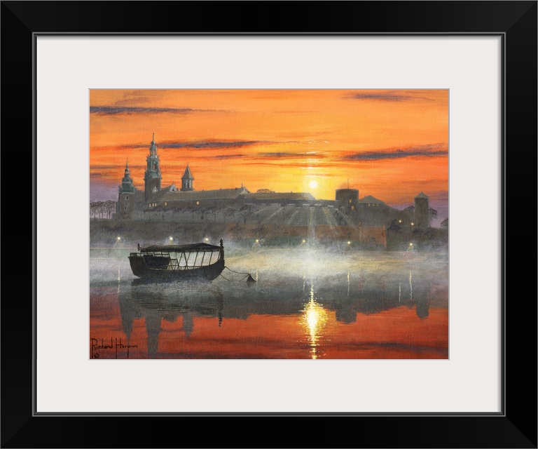 Art Cityscapes Contemporary Art Rivers, Lakes, and Oceans Richard Harpum Orange Wall Art Painting Poland Transportation Boat