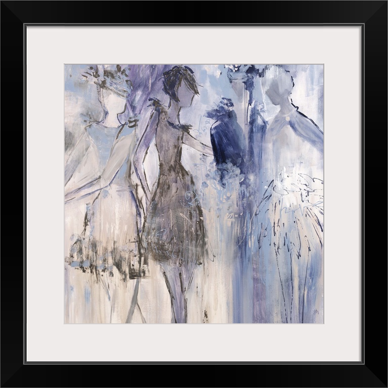 <p>Contemporary artwork of several female figures in dresses in shades of blue and purple.</p>