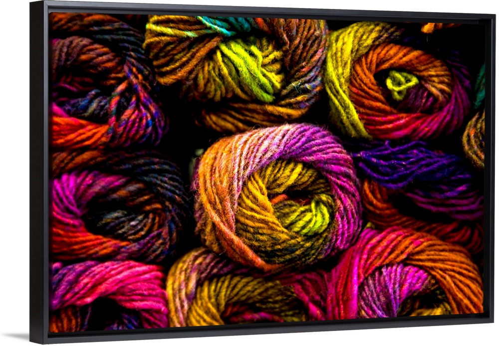 <p>A close up of richly coloured knitting yarns in a kaleidescope of colours.</p>