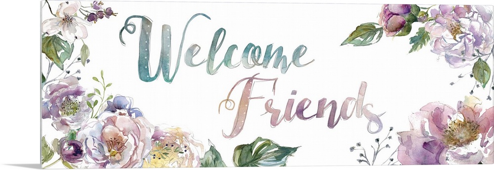 <p>"Welcome Friends" surrounded by watercolor flowers.</p>