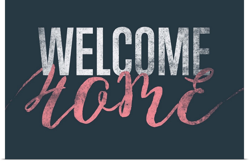 <p>"Welcome Home" in white and pink on a dark teal background.</p>