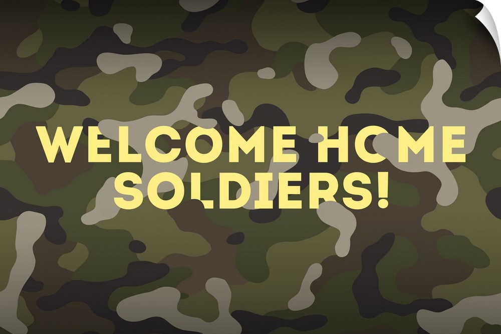 <p>"Welcome Home Soldiers!" written in yellow on a camouflaged background.</p>