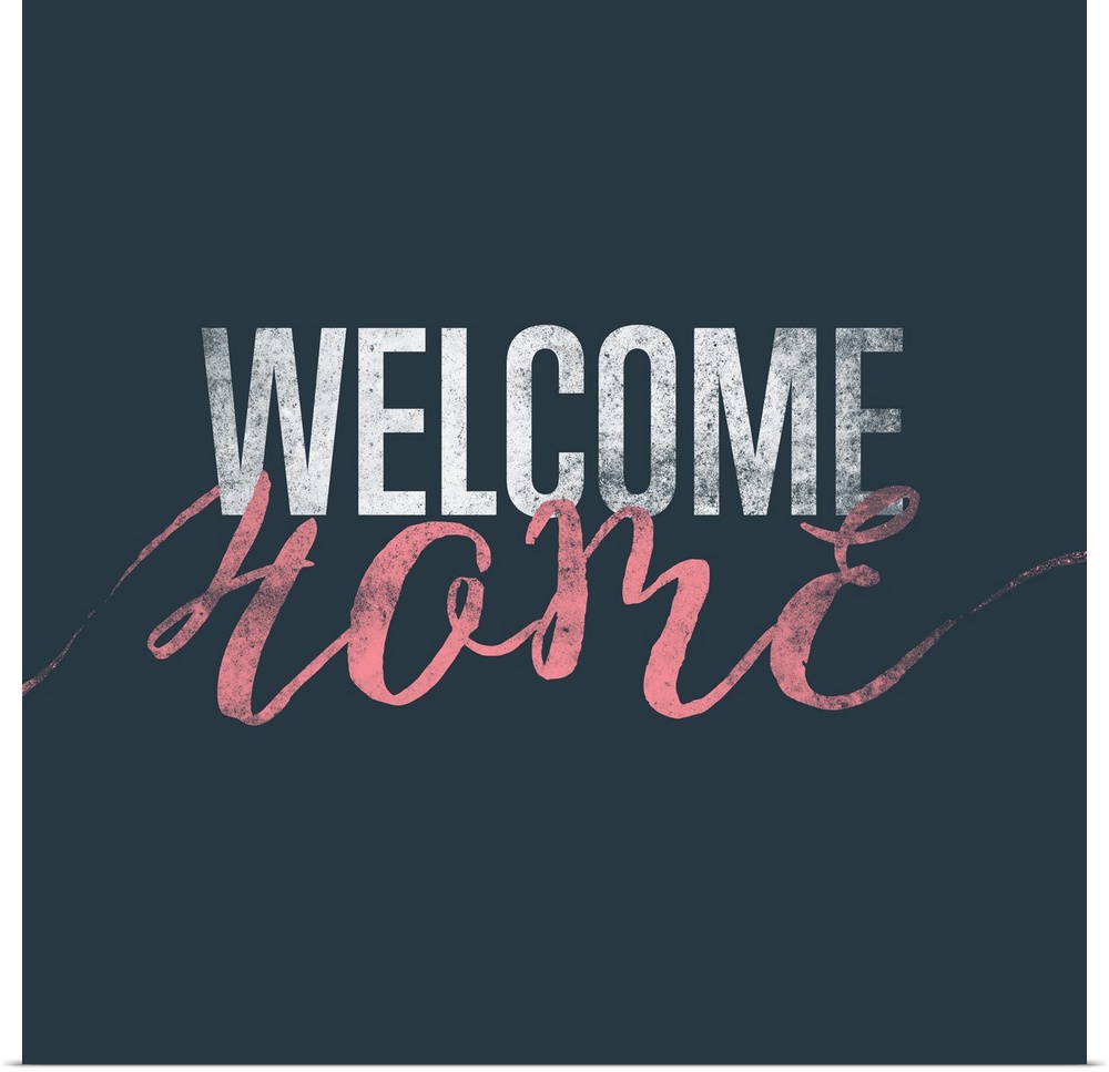 <p>"Welcome Home" in white and pink on a dark teal background.</p>