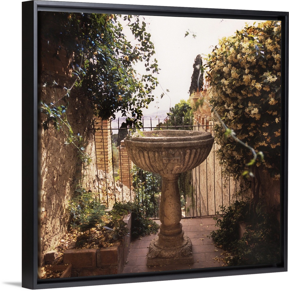 <p>A birdbath is the centerpiece of an Italian garden</p>