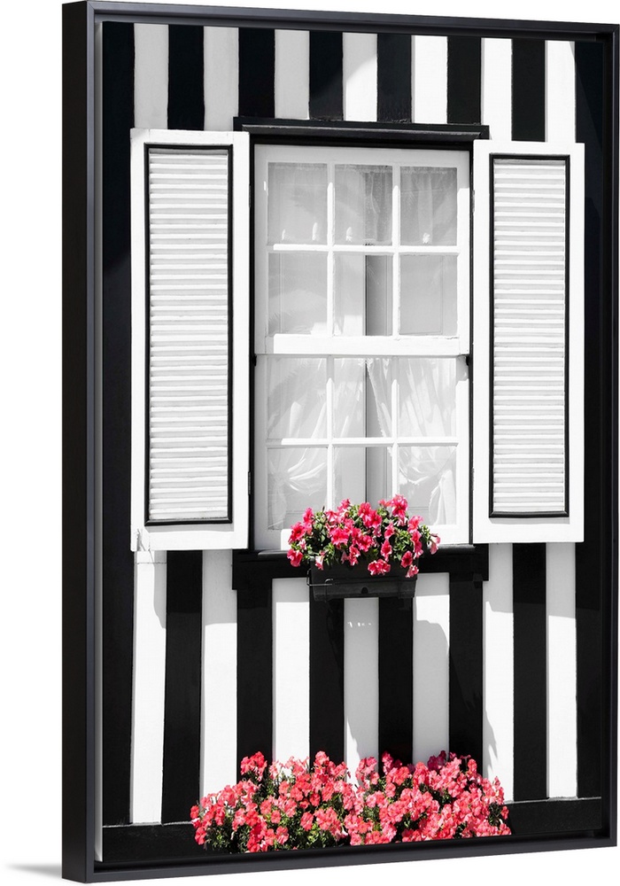 <p>Its' a window of a typical house with black and white stripes at Costa Nova Beach, Portugal.</p>