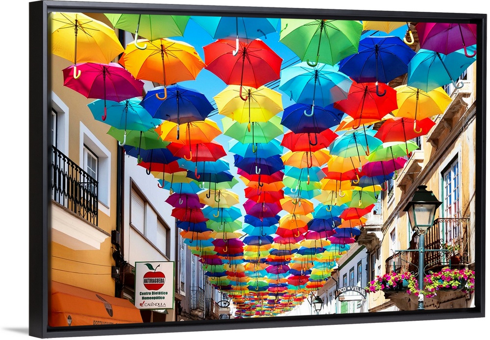 <p>The colourful umbrellas were photographed in the urban streets of Agueda in Portugal.</p>