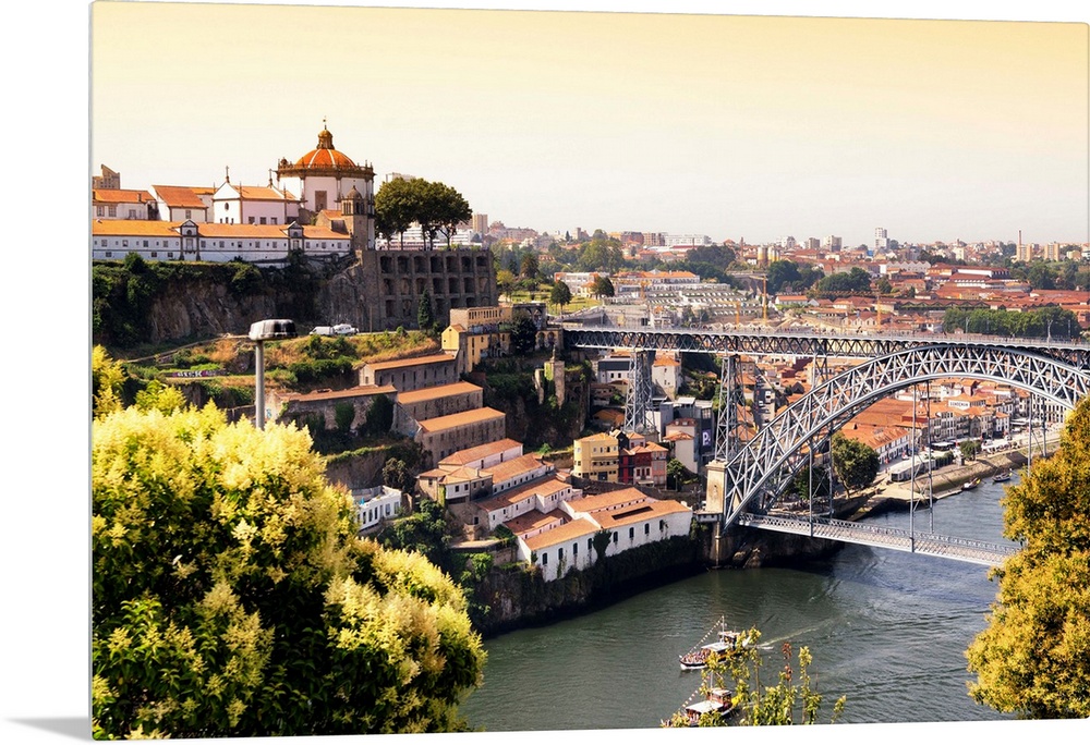 <p>It's a landscape picture of the city of Porto (Portugal) at sunset, with the Douro River and the Dom Luis bridge.</p>