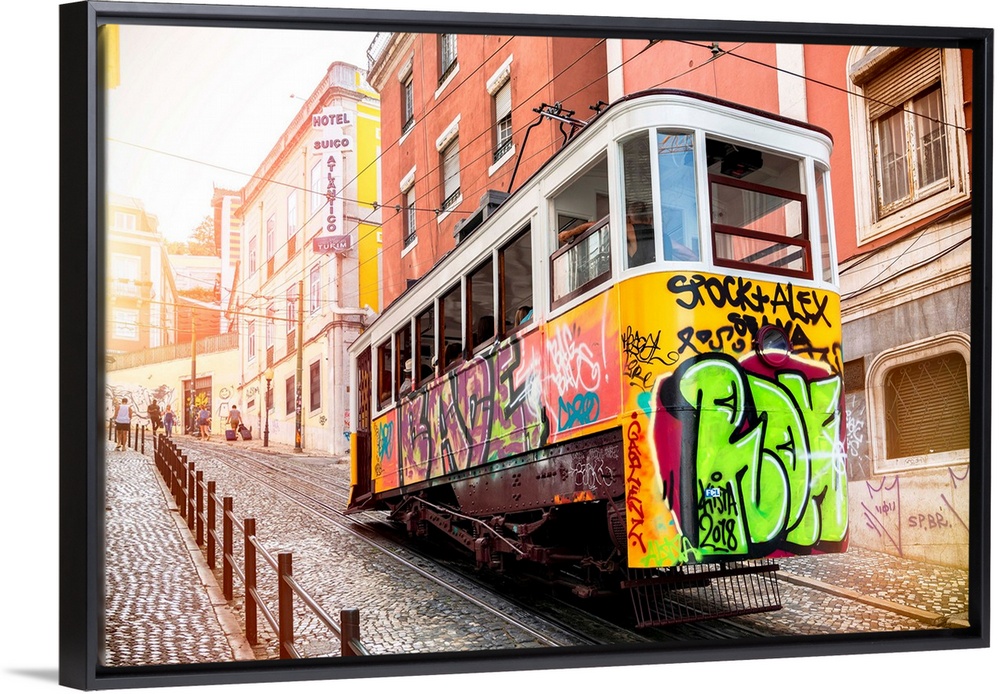 <p>It's the Gloria funicular with graffiti that connects Baixa to Bairo Alto, in the historic center of Lisbon, Portugal.</p>