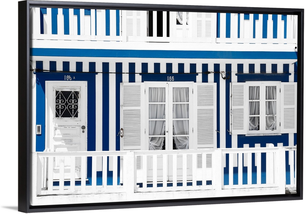 <p>It's a typical white house facade with blue stripes in Costa Nova Beach, Portugal.</p>