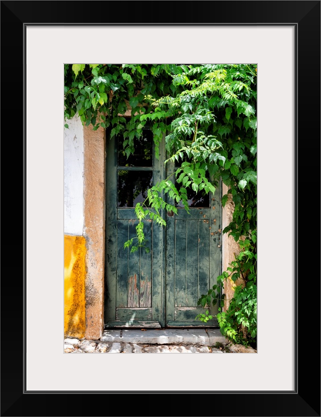 <p>It's an old green gateway surrounded by beautiful green foliage in Portugal.</p>