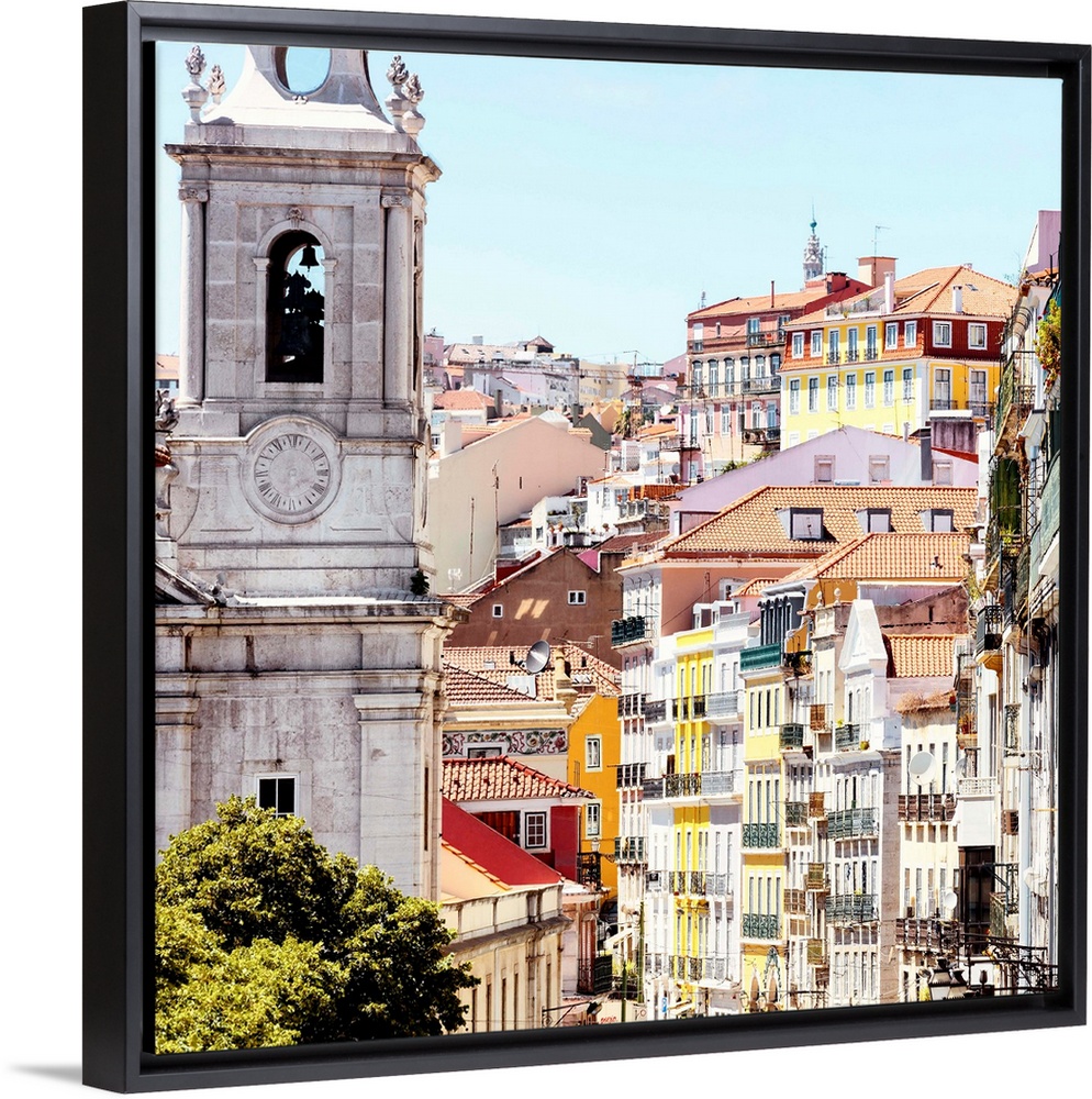 <p>It's a beautiful view of a street in Lisbon with colorful facades in Portugal.</p>