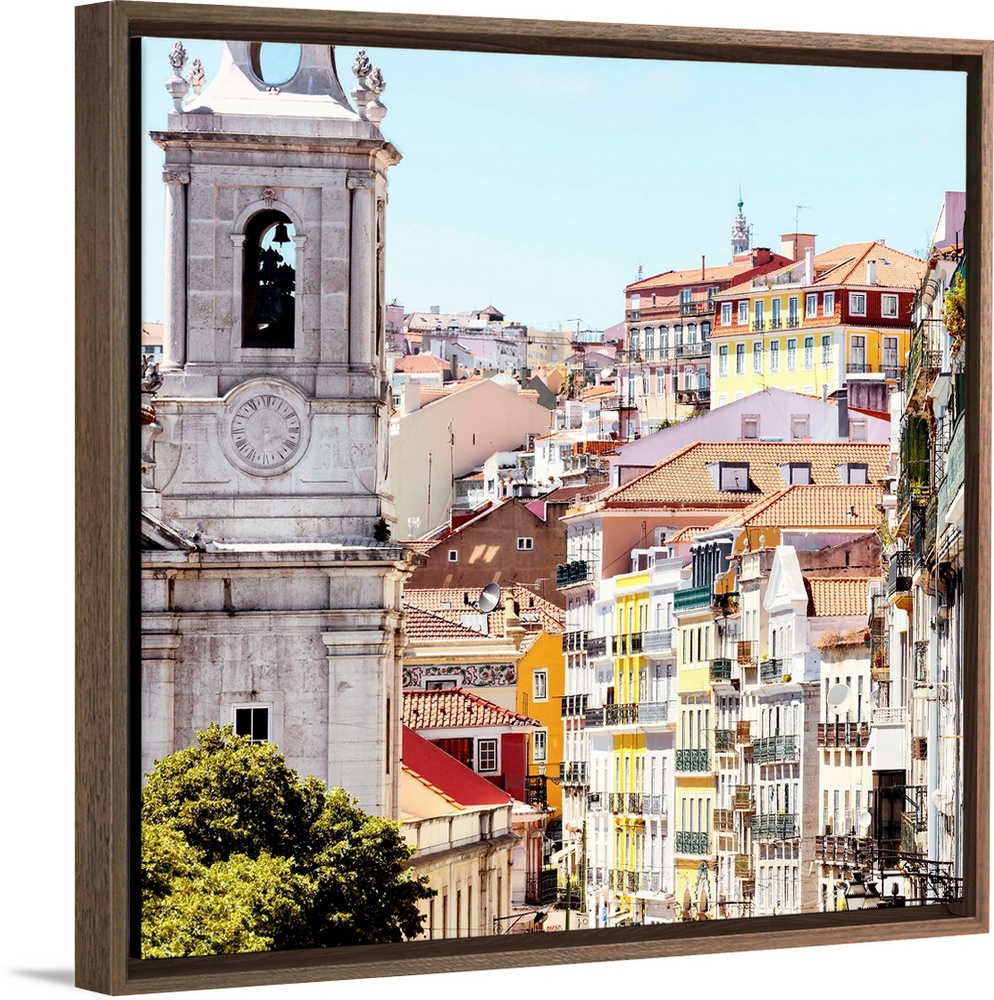 <p>It's a beautiful view of a street in Lisbon with colorful facades in Portugal.</p>