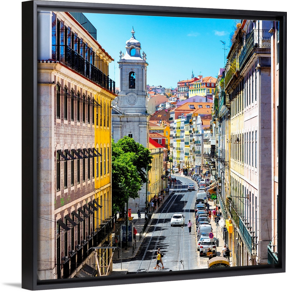 <p>It's a beautiful view of a street in Lisbon with colorful facades in Portugal.</p>