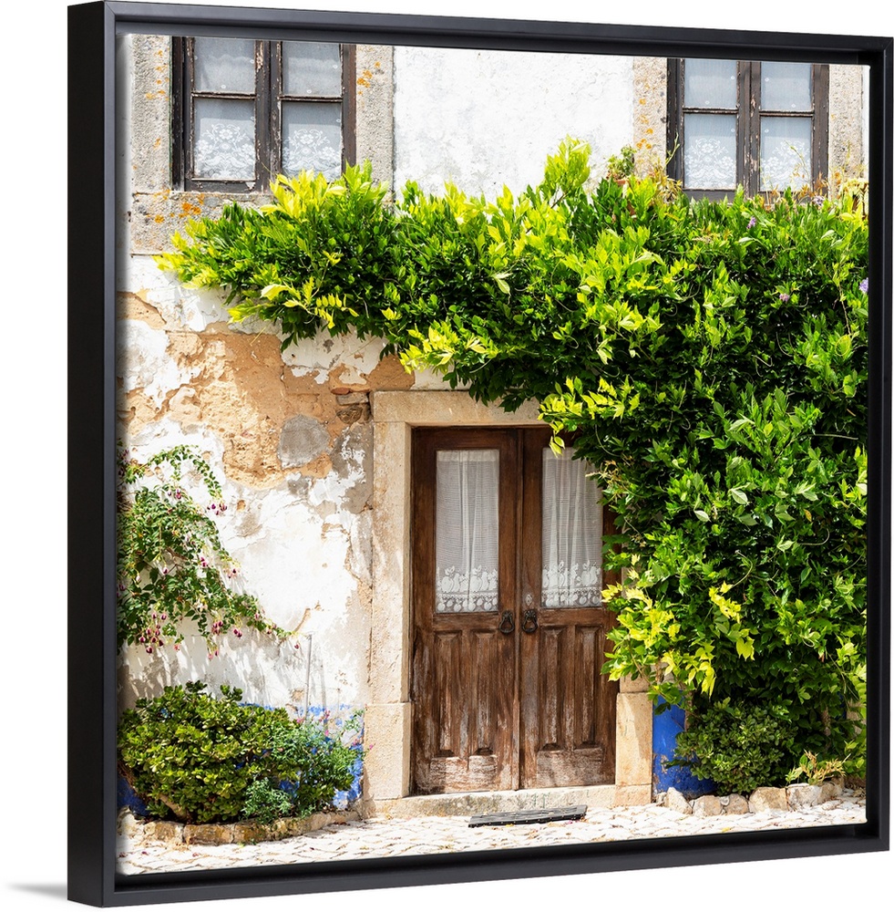 <p>It's an old traditional house facade sported by a beautiful green climbing plant in the medieval town of Obidos (Portugal).</p>