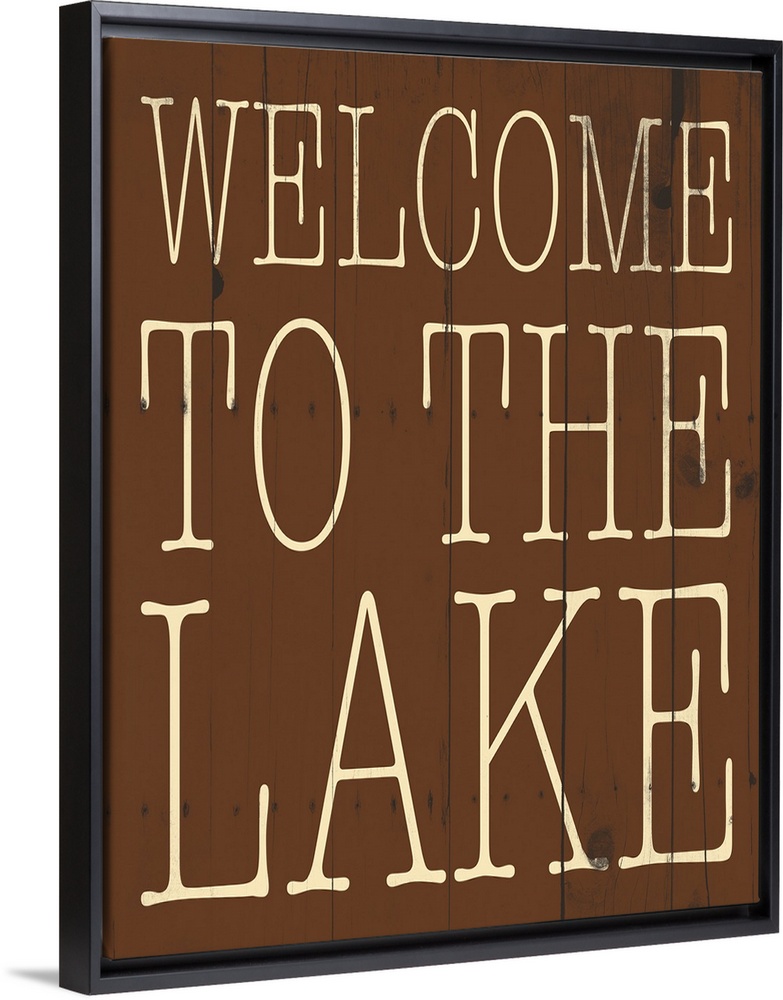 <p>Typographical artwork with "Welcome to the lake" in a thin rustic text.</p>