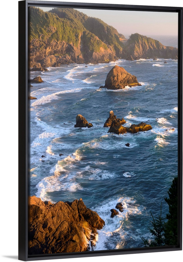 <p>USA, West Coast, Oregon, State Scenic Corridor, Sunset with waves crashing.</p>
