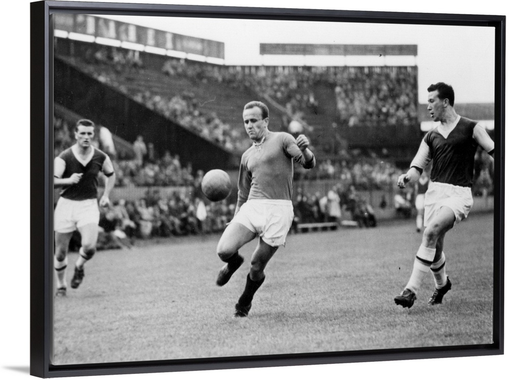 <p>23rd May 1957: Macek of Prague controls the ball during his team's game against West Ham United in Prague, Czechoslovakia</p>