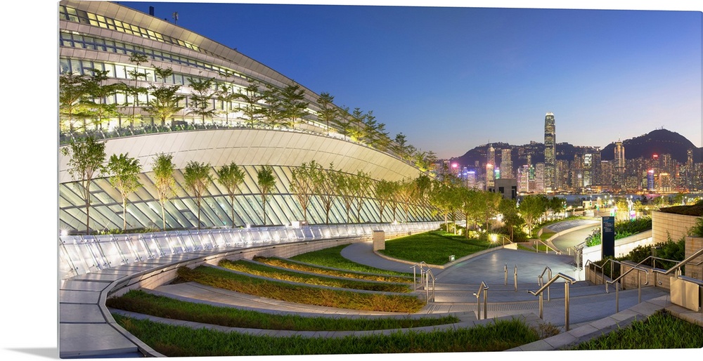 <p>West Kowloon High Speed Rail Station and skyline at dusk, Kowloon, Hong Kong.</p>