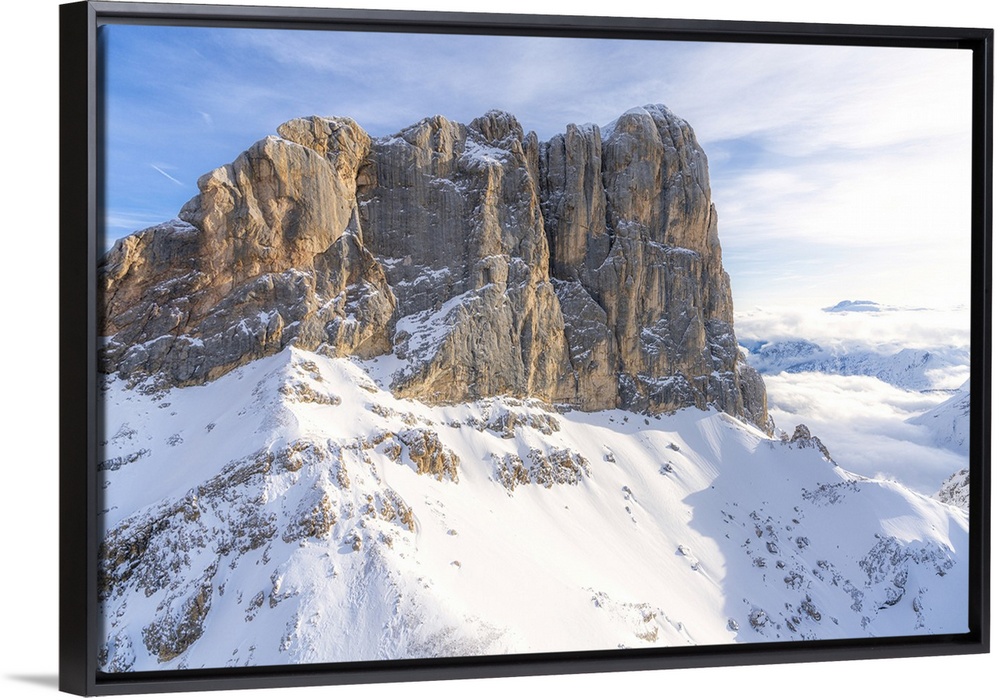 <p>Aerial view of west ridge and south face of Punta Penia in winter, Dolomites, Trentino-Alto Adige, Italy, Europe</p>
