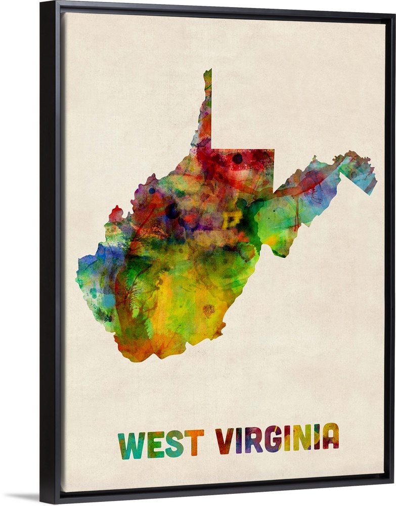 <p>Contemporary piece of artwork of a map of West Virginia made up of watercolor splashes.</p>