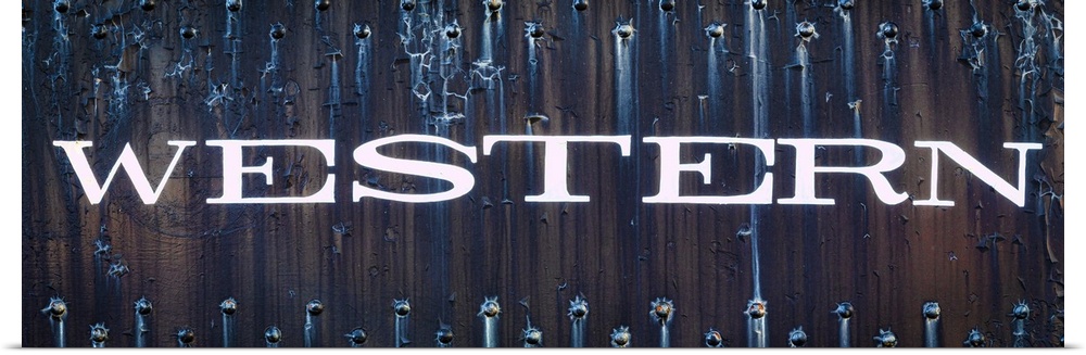 <p>Close up photo of detail and lettering from a vintage train car.</p>