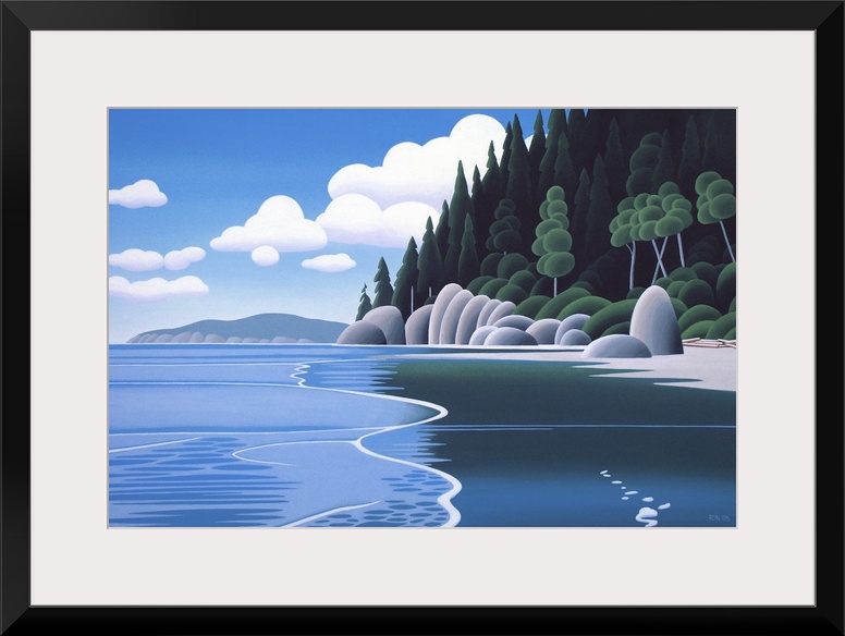 <p>Contemporary colorful painting of a wilderness coastline.</p>