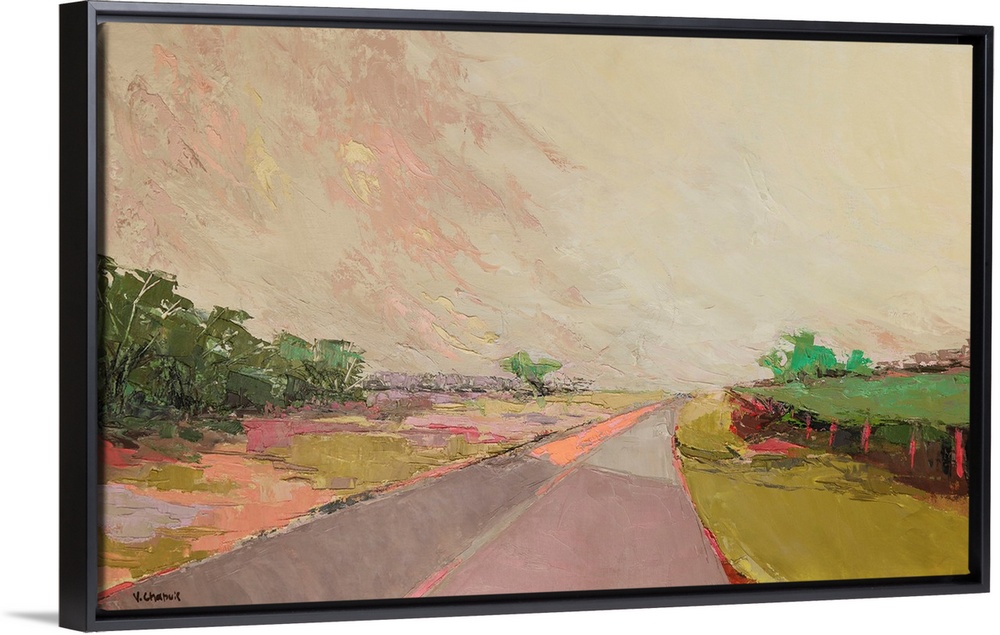 Art Pink and Green Contemporary Art Landscapes Landscapes Road Painting Peach Fuzz