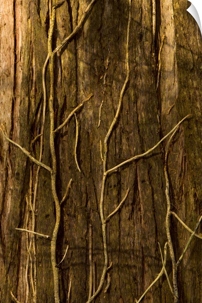 <p>Western red cedar, Thuja plicata, with dead English ivy,Hedera helix, Stanley Park, British Columbia</p>