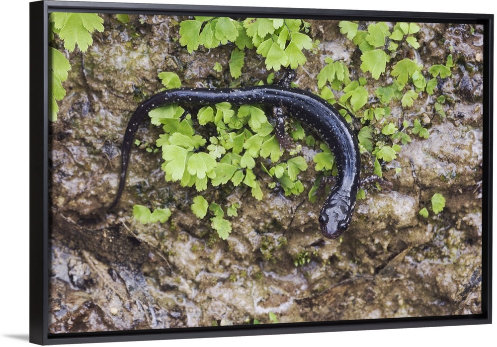 <p>Western Slimy Salamander, Plethodon albagula, adult with fern, Uvalde County, Hill Country, Texas, USA, April 2006</p>